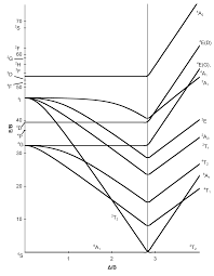 Certain Tanabe-Sugano diagrams (d 4, d 5, d 6, and d 7) also have a vertical line drawn at a specific Dq/B value, which is accompanied by a discontinuity in the slopes of the excited states' energy levels.This pucker in the lines occurs when the identity of the ground state changes, shown in the diagram below. The left depicts the relative energies of the d 7 ion states as functions of ...