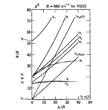 Tanabe Sugano Exercises These questions deal in part with concepts presented in today's lecture and assigned readings. Have a look at the Tanabe-Sugano diagram for the d 5 case. What is the term symbol for the ground state of a free d 5 ion (where Δ o /B = 0)?; What is the term symbol for the ground state of a d 5 ion satisfying the condition that Δ o /B = 20?; What is the physical meaning ...