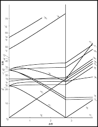 Tanabe Sugano diagram untuk kompleks Oh dengan konfigurasi d2 ke d8 diberikan dalam Bagian sumber daya 6 . Nol energi dalam diagram Tanabe ? Sugano selalu diambil sebagai bahwa istilah terendah .