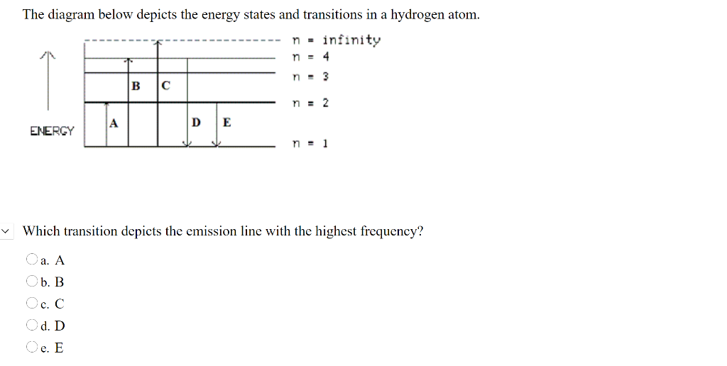 39 the following is a diagram of energy states and transitions in the hydrogen atom.