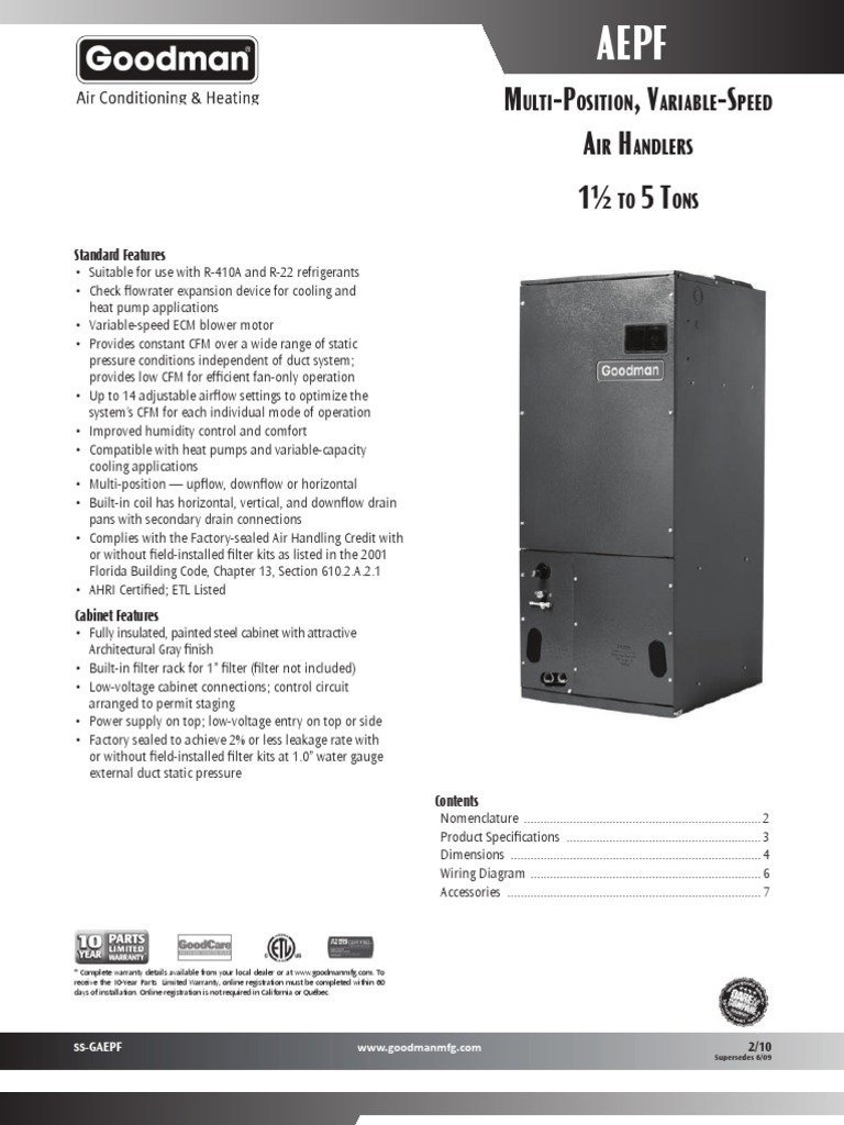 The Goodman literature library has consumer brochures and technical specifications for various Goodman HVAC models and product lines.