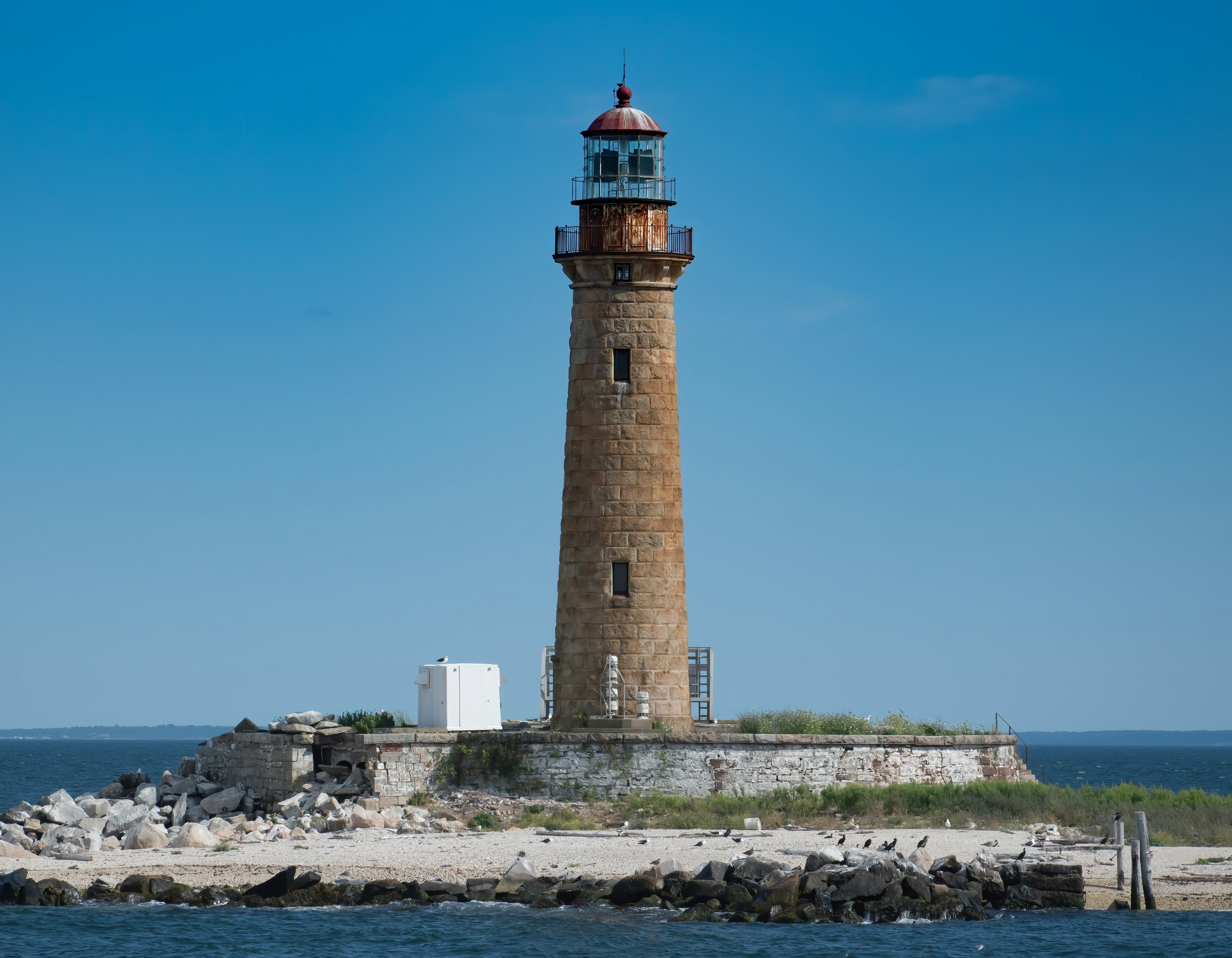 Little Gull Light. Taken by the British in the War of 1812 and destroyed by the hurricane of 1815, Little Gull Island Lighthouse has had a colorful past. The tower that stands today dates from 1858.