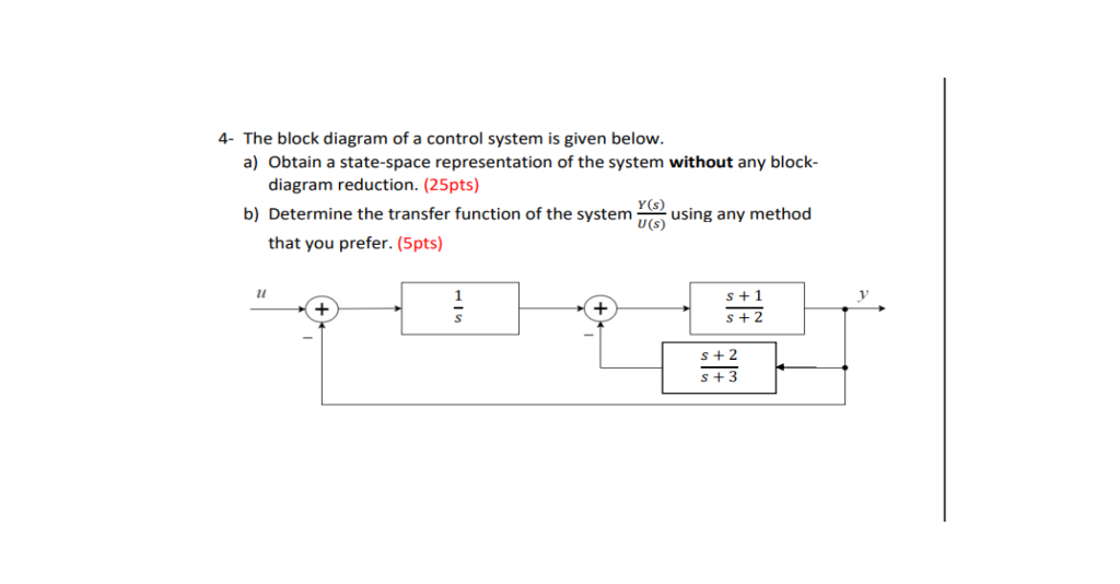 Converting a Transfer Function to State Space representation Then we represent the differential equation in state space in phase variable form. Example 1. Find the state-space representation in phase-variable form for the transfer function shown in At this point, we can create an equivalent block diagram of the systemof Figure 1(a) to help visualize the state...