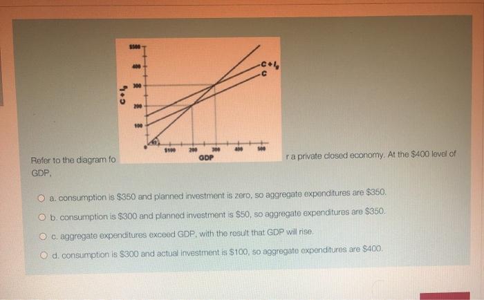 Untitled | PDF | Government Spending | Gross Domestic Product 39. Refer to the above diagram for a private closed economy. Aggregate saving in this economy will be zero when: A) C + Ig cuts the 45-degree line. MA: 174-175. 50. Refer to the above diagram for a private closed economy. Gross investment: A) is positively related to the level of GDP.
