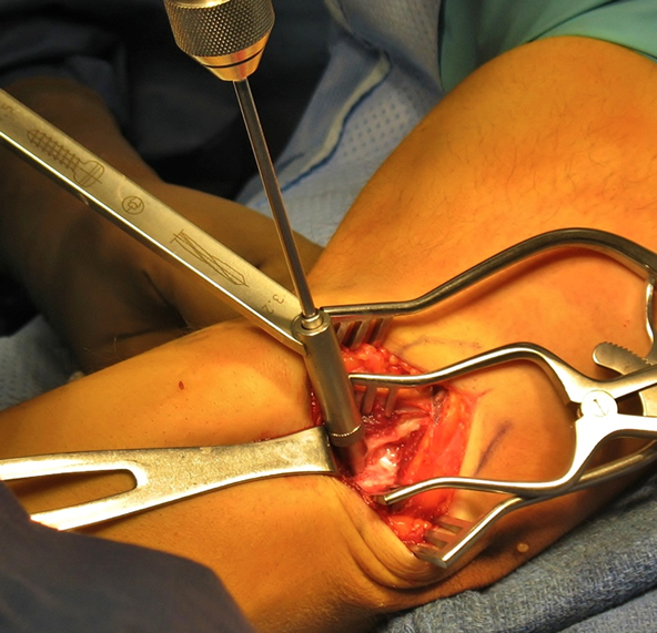 Tommy John Surgery and UCL Injuries | Heiden Orthopedics Surgical Repair: Tommy John Surgery. In performing the surgical repair of the elbow structure, the patient is lying on his or her back, with the arm supported in a slightly bent position. Either a nerve block or general anesthetic will be administered for your comfort during the procedure.