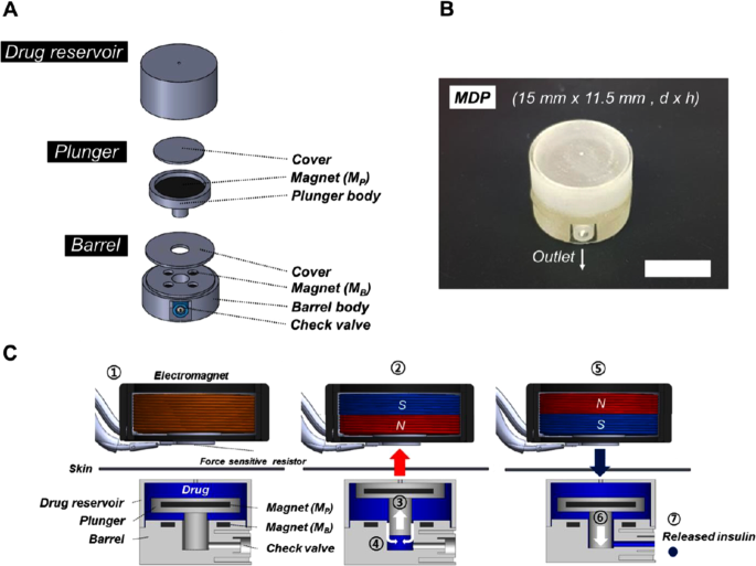How Insulin Pumps Work - Diabetes Diagram of a tethered insulin pump . An example of a typical 'tethered insulin pump' (insulin pumps connected to the body via tubing). You will notice the following: Buttons: Allows the wearer to make choices about how much insulin to deliver and when.