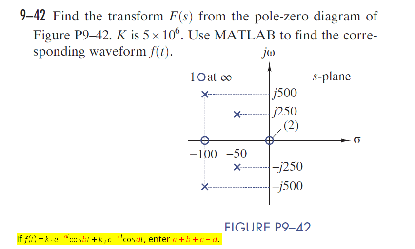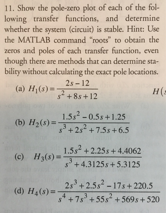 HW8 (1).pdf - EECS 460: HW#8 Due Wednesday, November 3 1 ... Instead, use the following Matlab functions to perform the calculations: tf, feedback, pole, and zero. (b) The closed-loop system has a "fast" pole and a slower complex pair of poles. Use the natural frequency and damping ratio of the "slow" complex pair to sketch the approximate response θ ( t ) due to a unit step reference command. (Get Answer) - Problem 7 Now let us investigate a group ... Load the data to MATLAB, plot its (1) pole-zero diagram, (2) magnitude and (3) phase responses and (4) group delay. Use the subplot() function to plot them in one figure. (c) Generate the output signal y[n] by filtering your input signal with the provided coefficients and plot it. Save x[n] and y[n] as two audio files "input.wav" and ... Determine the output of the given Block diagram GHz = 2 (z-1) ----- (z-1) Sample time: 1 seconds Discrete-time zero/pole/gain model. In this case we still have a pole-zero cancellation to deal with because nothing in the above operations "knew" to cancel the s in the numerator of Hs with the s in the denominator of Gs. transfer function - Electrical Engineering Stack Exchange I know that the frequency at which the phase plot crosses zero is the resonant frequency but the phase plot here doesn't cross zero. I tried approximating \$\zeta\$ using the fact that maximally flat response is obtained for \$\zeta = 0.707 \$, so that for the given plot, \$\zeta < 0.707 \$. But I wasn't able to exactly find a value.