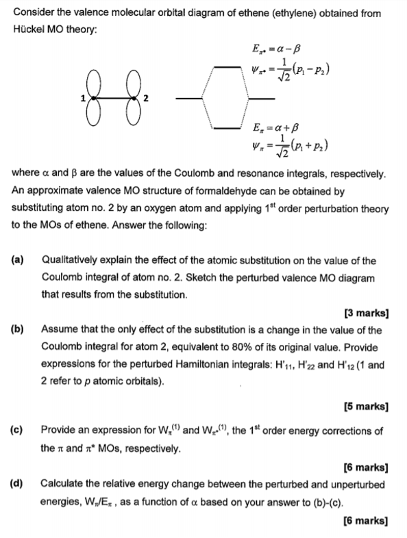 Solved a) Considering the molecular orbital diagram for ... a) Considering the molecular orbital diagram for ethylene above, draw the molecules (with some kind of three-dimensional representation) of the initial interaction of ethylene with a very strong acid (represent this as H-A). b) Finish the molecular orbital diagram of formaldehyde (H 2 CO) by making the molecular orbitals in the middle. Don't ...